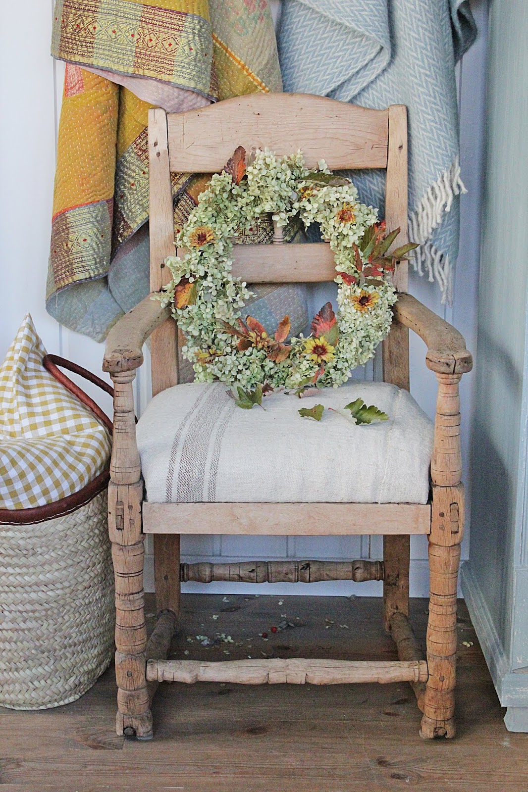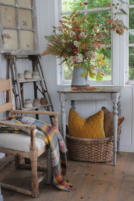 Jeg som er så glad i å dekke bord måtte jo dekke et høstbord i år også . Inspirasjonen kom med de fantastiske bladene jeg hadde samlet på og lagt i press. Vakre ,gylne toner i både tekstiler og naturmateriale setter virkelig preget her. De herlige gresskarene er fra Hammond blomster her i Porsgrunn og har virkelig gledet både her hjemme og i butikken denne høsten.