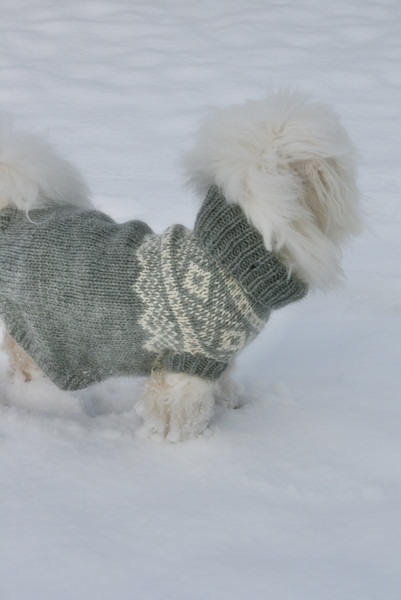 Jeg pleier ikke å kle han opp,men en regndress,varmedress og denne har han.Han er vel ikke den hunden som elsker å gå med dress heller,men denne funker faktisk fint. |