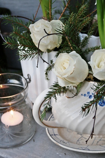 Alt naturmatriale har ikke flyttet ut enda...kvister og kongler skal få pynte inne litt til.Håper alle har en god start på 2012!!