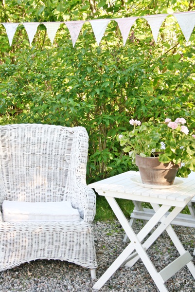 Skjønt innlegg! De stolene var så skjønne. Herlig sitteplass, og så fint med vimplene over. :) Håper hundevennen har mer matlyst i dag da. :) Hos meg er det sommerlig stue på bloggen i dag. :)