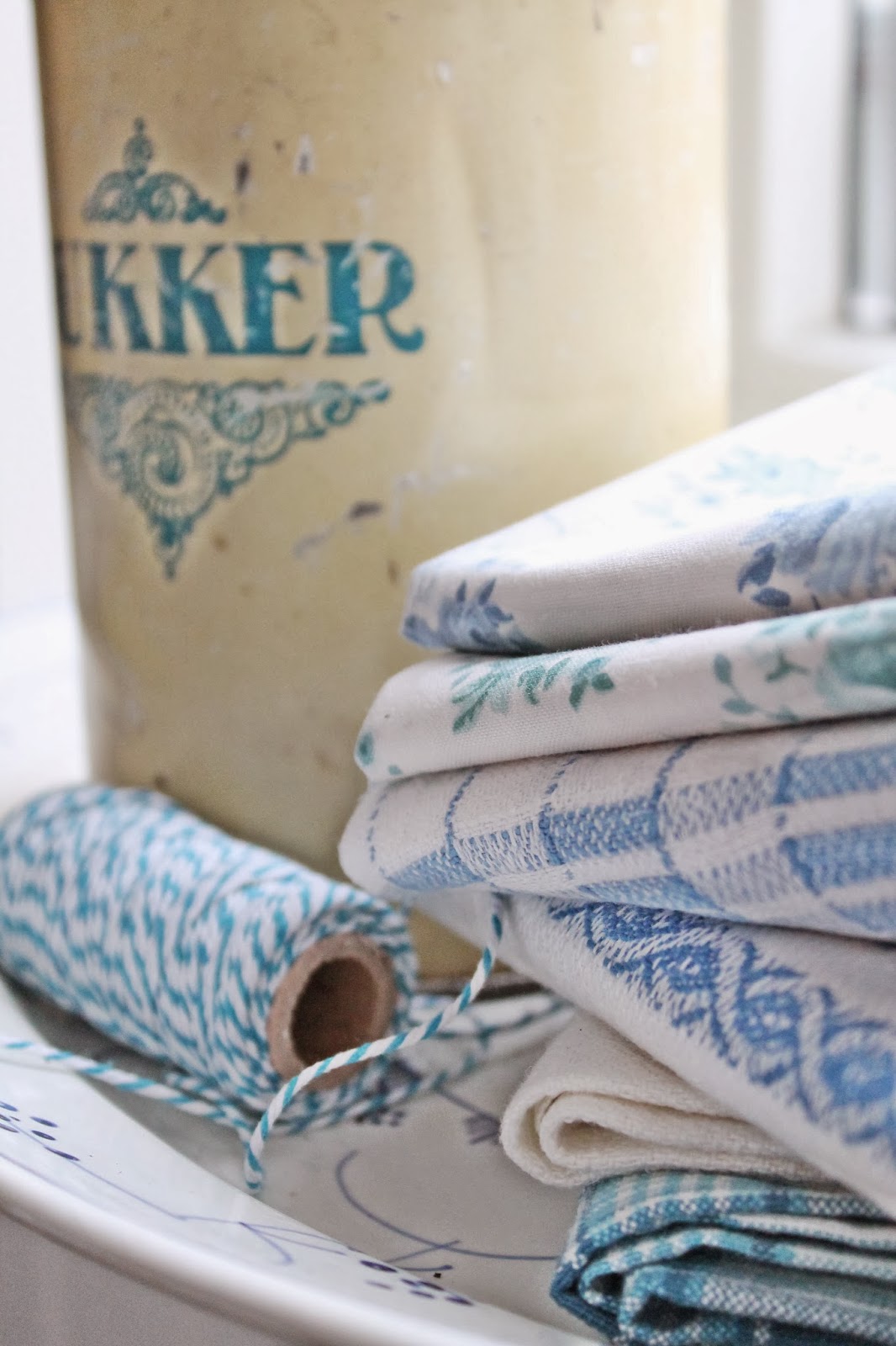 Tekstiler fra Tilda og gamle blå kopphåndkler i skjønn BLÅ forening;) Ja du kan gjerne si jeg er tullete etter slike håndkler også og de brukes kun til dekorasjoner. Altfor fine til huselig bruk synes nå jeg .