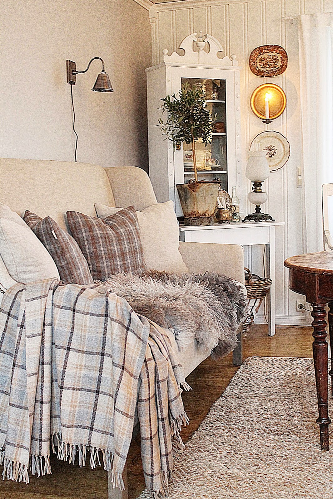 Such a beautiful new sofa, and lovely, lovely wool plaid fabrics, and throws! It looks so cozy and comfy. Enjoy it! I adore your blog, look often, but haven't left a comment before. Your decorations and photos are always inspirational!! Warm hugs!