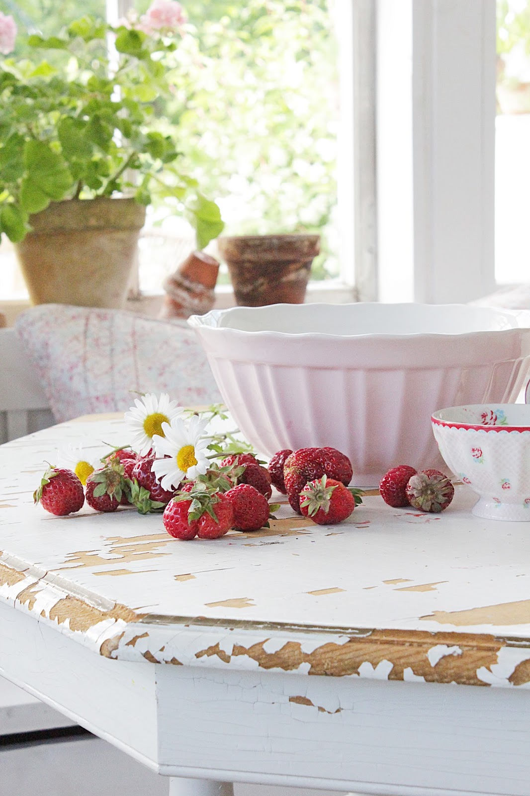 Det rosa settet med kopp og skål heter "Tess" og er jo så herlig og sommerlig i selskap med jordbær .Dette er også fra Greengate. En rekke sommer ting fra Greengate vil dukke opp i fremtidige innlegg nå, for jeg har et velig hyggelig samarbeid med de for tiden .
