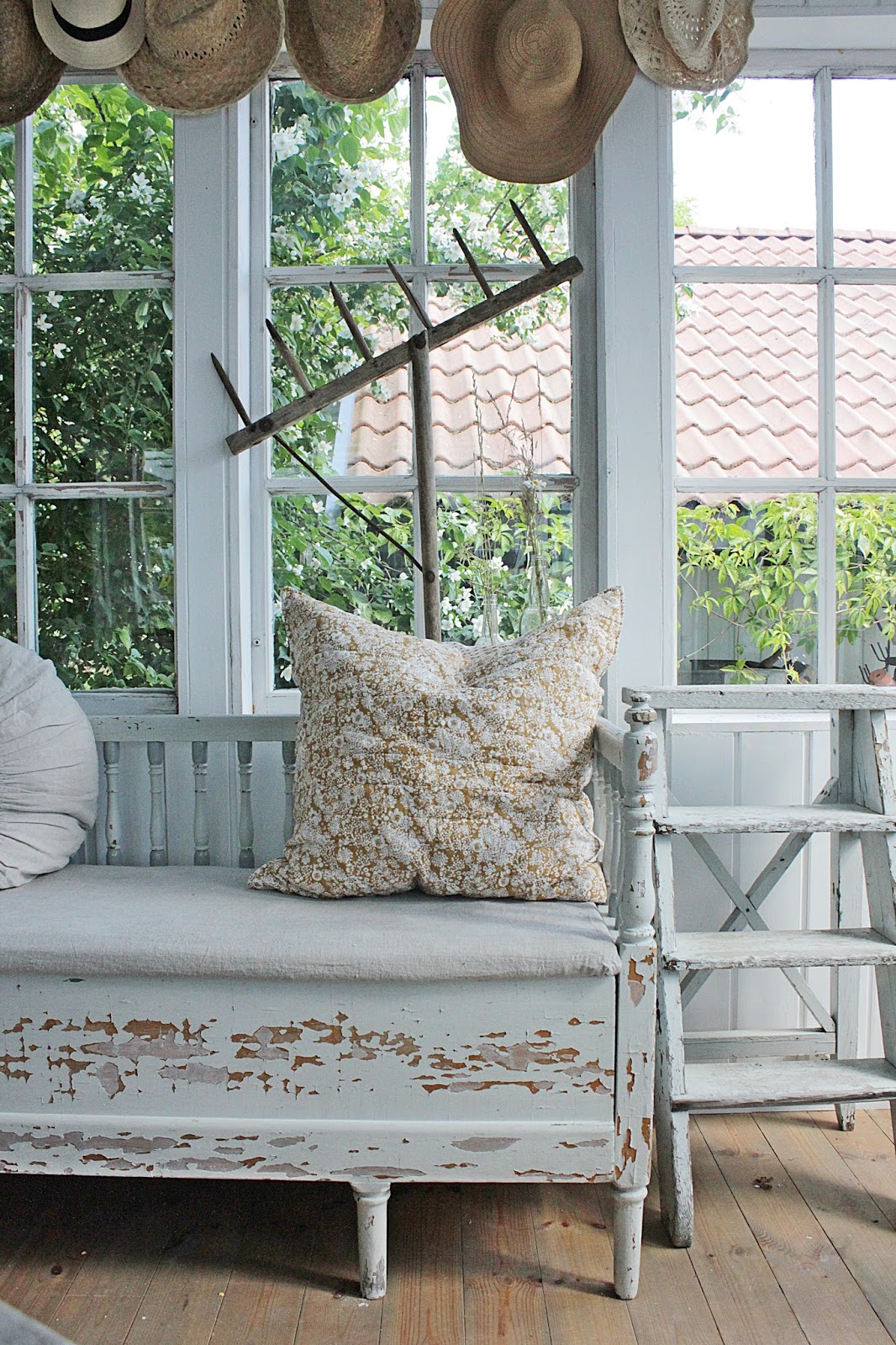 I helgen har jeg malt litt og denne gange er det gjenbruksskapet av gamle vinduer som har fått en omgang med "Bergere"milkpaint. Elsker jo denne fargen og synes den er ekstra fin nå om sommeren.