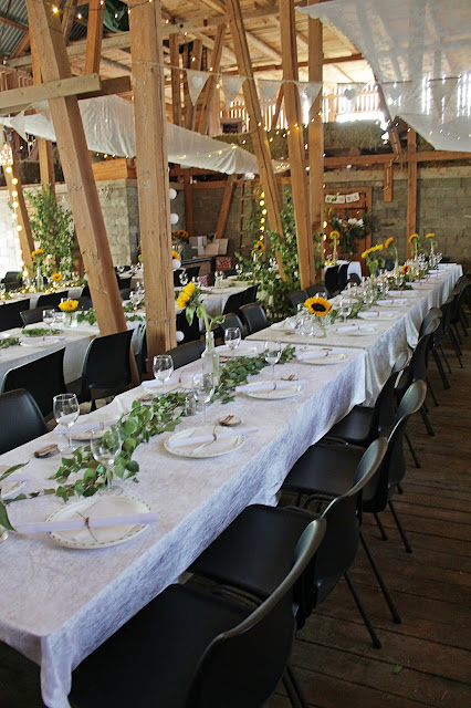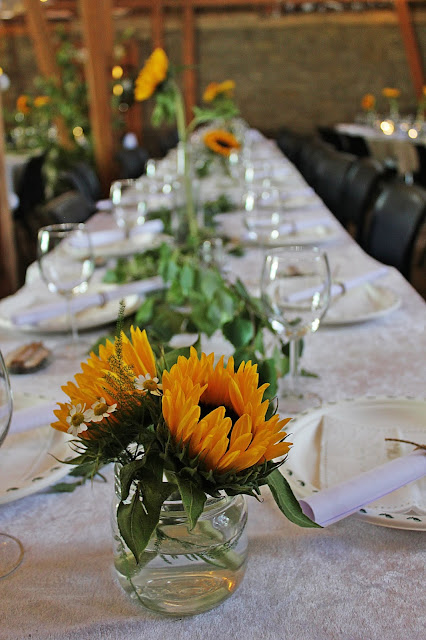 Thank you for your picture wedding invitation. What a beautiful celebration, the ceremony and reception space are dreamy. I love your old Norway glass juice/milk bottles stuffed with gorgeous sunflowers on bright white table linens, they look so cheery and festive. Looks like it was the most perfect day!