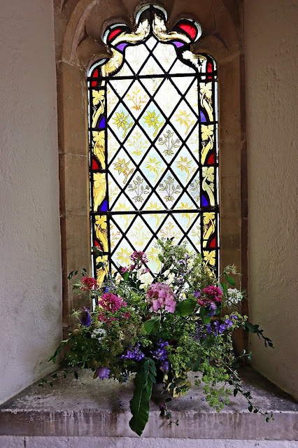 Lokale blomster pryder et av kirkevinduene...bare så enkelt og nydelig !