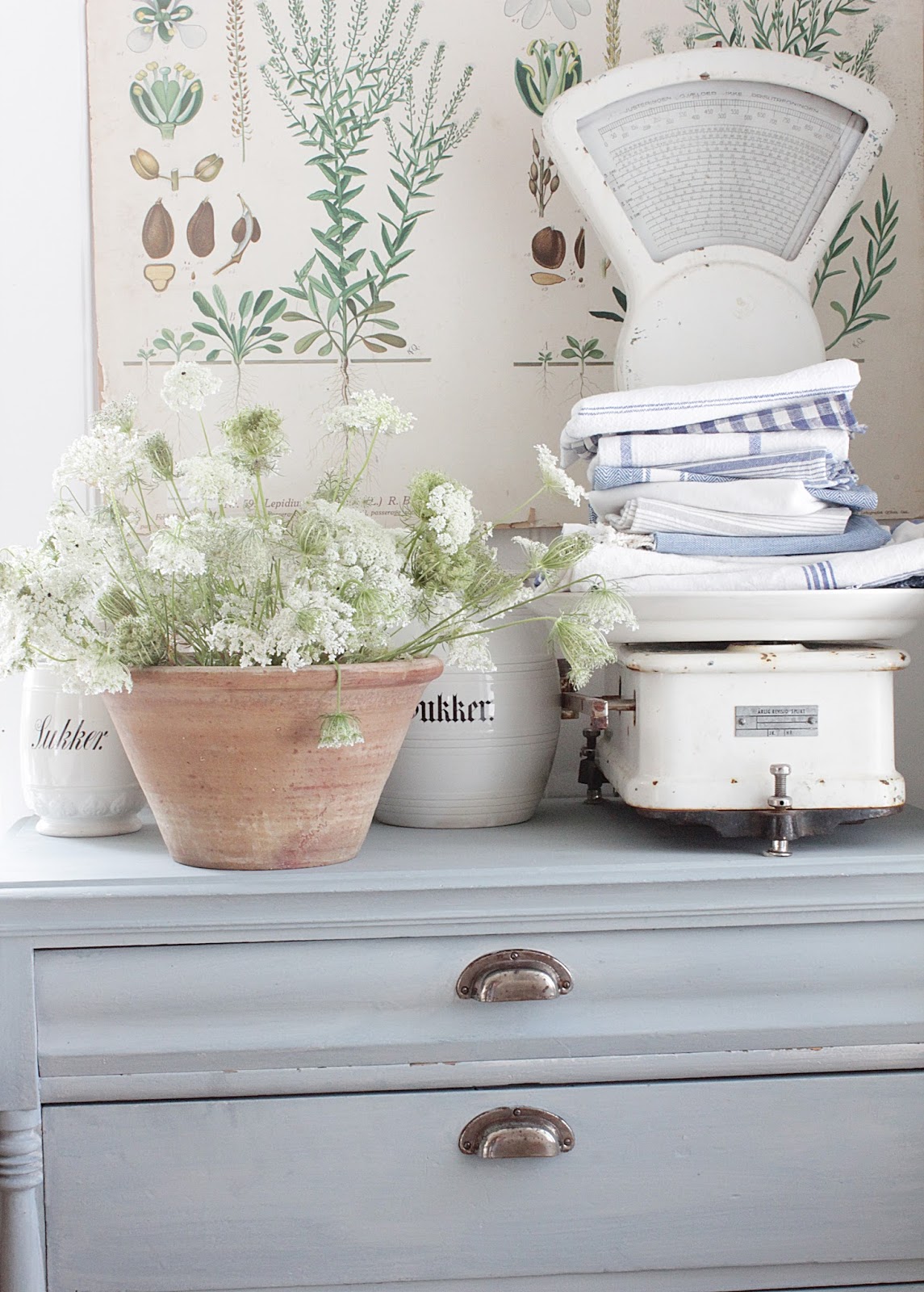 Min fantastiske kommode i "Bergere" milkpaint.....er SÅ glad for å bringe inn den herlige fargen her inne. Keramikkrukka ble med fra "Siloen "like fin som fruktbolle eller til blomster.Jeg vet jeg kommer til å bruke denne mye .