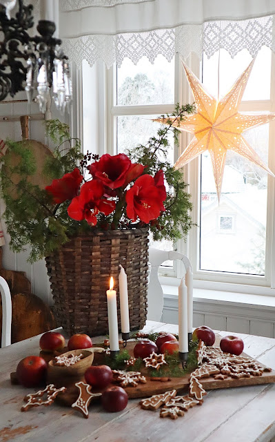 Så har vi den her igjen, vakre Desember ! Som dere vet er dette favorittmåneden min og det er på denne tiden kreativiteten og hjemmekosen blomstrer ekstra her hjemme..Jeg har visst blitt bare mer og mer julete med tiden, sies det her hjemme og har jul i hver krok nå. Dere som har fulgt meg en stund vet jo at julestilen har forandret seg litt her hjemme , fra sølv og hvitt til mye rødt og hvitt...og jeg kjenner i julehjertet mitt at rødt og hvitt er min favoritt...