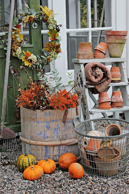 Og mot den grønne døren og karmer er høstfargene nydelig.