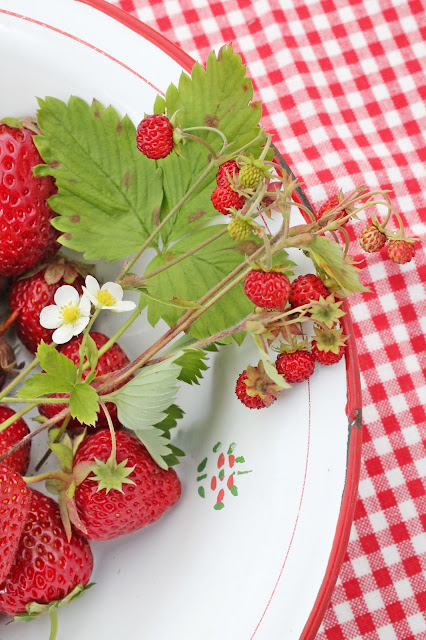 De siste årene har svigermor og meg gått sammen om et lite sommer prosjekt, vi har laget rabarbra og jordbærsyltetøy og saft av denne herlige fruktkombinasjonen. Det står på planen denne sommeren også, og i fjor solgte jeg syltetøyet på malerutstilling min..lite visste jeg den gang at jeg denne sommeren skulle drive egen butikk... :) Så snart skal disse herlige friske varene selges i butikken...åh! da er det skikkelig sommmer, når dette er på plass:)